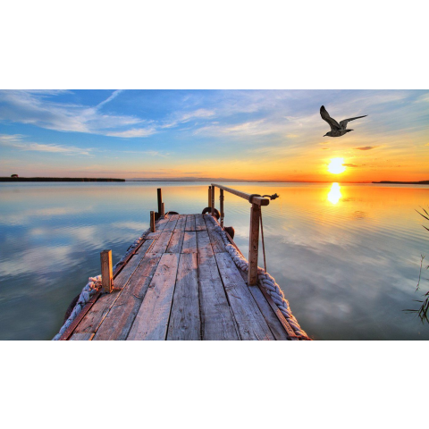 1 kép Öntapadó és mosható falfestmény Ponton a naplementében 2, 300 x 250 cm