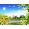 1 kép Öntapadó és mosható falfestmény Repülő házak felett, 250 x 150 cm