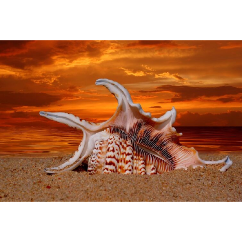 1 kép Öntapadó és mosható falfestmény Strand, kagylók, alkonyat, 250 x 200 cm