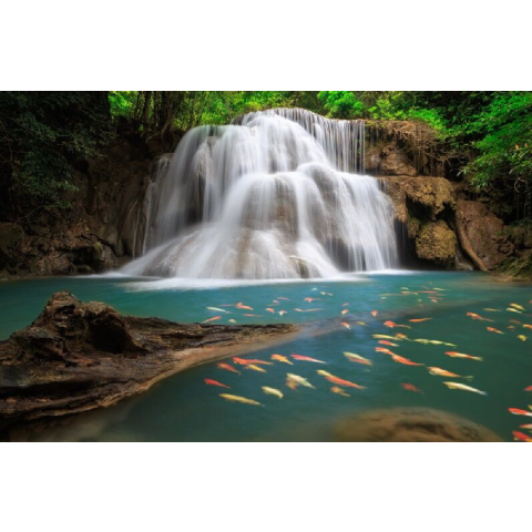 1 kép Öntapadó és mosható falfestmény Vízesés halakkal, 250 x 200 cm