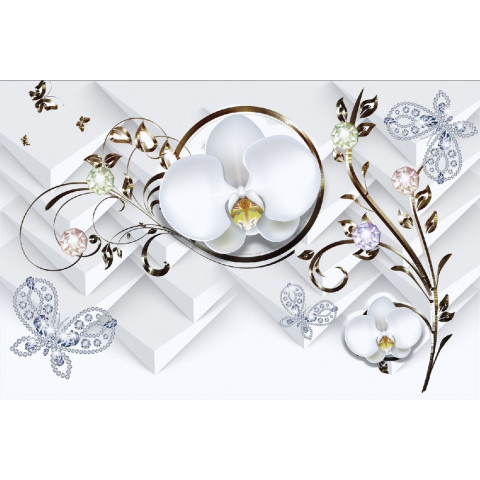 1 kép Öntapadó és mosható falikép Orchideák pillangóval, 350 x 200 cm