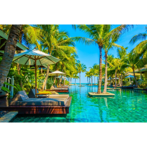 1 kép Öntapadó és mosható falikép Plaja72 házzal és pálmafákkal, 200 x 150 cm