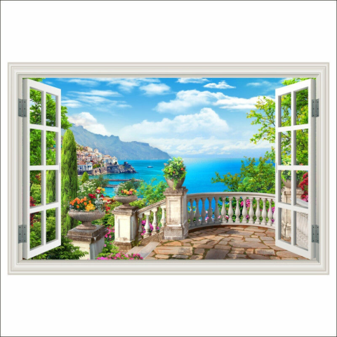 1 kép Öntapadó falfestmény Window Italy Village, terasz, nagy, 250 x 170 cm