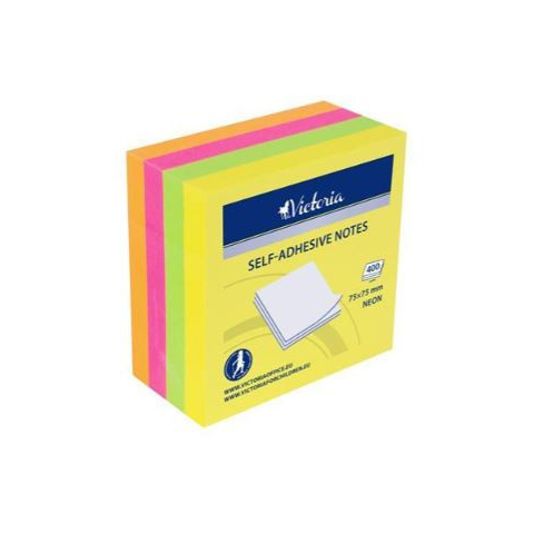Öntapadó jegyzettömb, 75x75mm, 400lap, VICTORIA, Neon