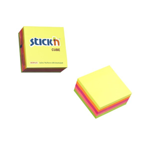 Öntapadós jegyzettömb STICK`N 76x76mm neon mix 400 lap 400 öntapadó lap egy tömbben, klasszikus méretben Különféle vonzó színben bármely munkaasztal felfrissítésére Könnyen felhelyezhető és ragasztómradvány nélkül visszaszedhető