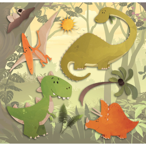 Öntapadós 3D-s színes dínófigurák, sima felületű falra, bútorra, ajtóra. Könnyen kezelhető, visszaszedhető.