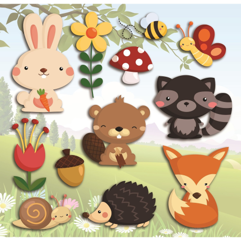1 kép Öntapadós 3D dekoráció erdei állatos 30 cm x 30 cm