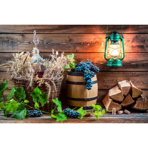 1 kép Öntapadós tapéta Hordó, szőlő, búza, lámpa, 350 x 250 cm