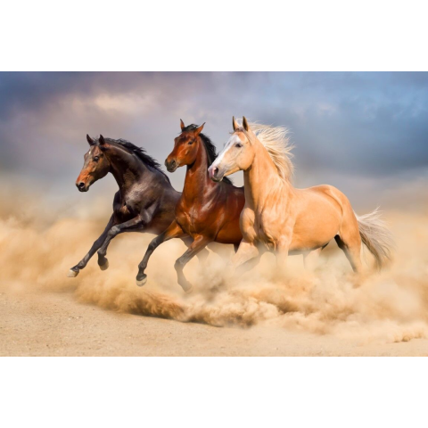 1 kép Öntapadós tapéta, Lovak, vágta, homok, 270 x 200 cm