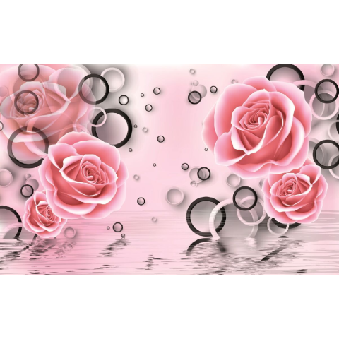 1 kép Öntapadós tapéta Rózsaszín rózsák és körök, 300 x 200 cm