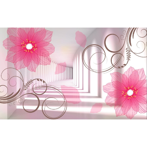1 kép Öntapadós tapéta Rózsaszín virágok az alagúton, 300 x 200 cm