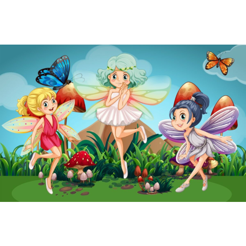 1 kép Öntapadós tapéta Tündérek, pillangók, gyerekrajzok, 250 x 150 cm