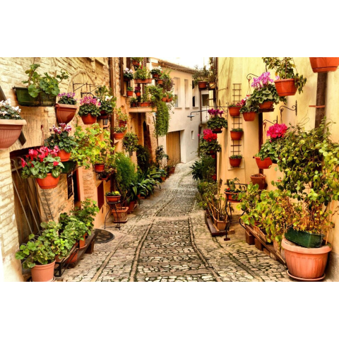 1 kép Öntapadós tapéta Utca virágokkal Spellóban, Umbriában, 200 x 150 cm