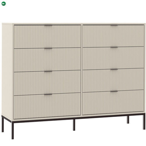 Elegáns kasmír színű komód 8 fiókkal - 150 cm széles ✨ Ez a stílusos, kasmír színű komód tökéletes kiegészítője lehet hálószobádnak vagy nappalidnak. A 8 tágas fióknak köszönhetően rengeteg tárolóhelyet biztosít, miközben a modern design feldobja a s...
