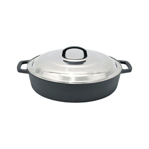 Prémium Öntöttvas Szeletsütő Rozsdamentes Acél Fedővel - 12 Liter 🥩 Ez a prémium minőségű öntöttvas szeletsütő ideális választás a tökéletesen átsült, ízletes ételek elkészítéséhez. A 12 literes űrtartalom és a rozsdamentes acél fedő kombinációja leh...