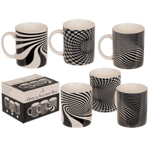 Optikai illúzió bögre. A csomag tartalma 1 db kerámia bögre Mérete: 300 ml 12 x 8 x 10 cm A bögrék mintáját nem lehet választani, véletlenszerűen kerülnek feladásra!