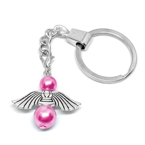 1 kép Őrangyal kulcstartó pink mesterséges gyöngyökkel, ezüst színben