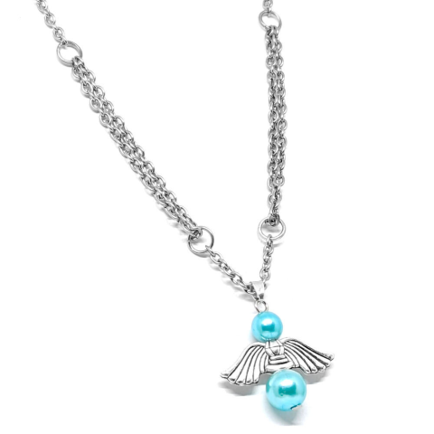 1 kép Őrangyal medál kék mesterséges gyöngyökkel, ezüst színű kétsoros nyaklánccal