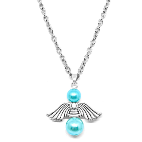 1 kép Őrangyal medál kék mesterséges gyöngyökkel, ezüst színű nyaklánccal