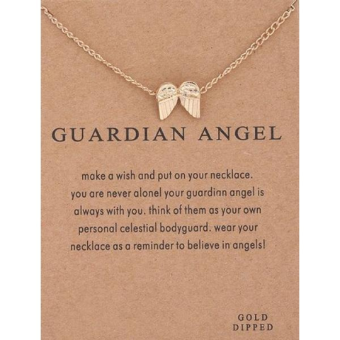 Angyalszárnyas őrangyal nyaklánc aranyozott kivitelben, kedves üzenettel. Stílusos, védelmező ékszer, amely tökéletes ajándék minden alkalomra