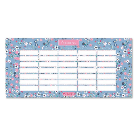 Órarend ARS UNA egylapos kétoldalas Pearl Blossom Blue Kétoldalas, magyar nyelvű órarend A és B hét beosztással. 250 gr-os félfényes műnyomó papírra, 4 szín nyomással nyomott.