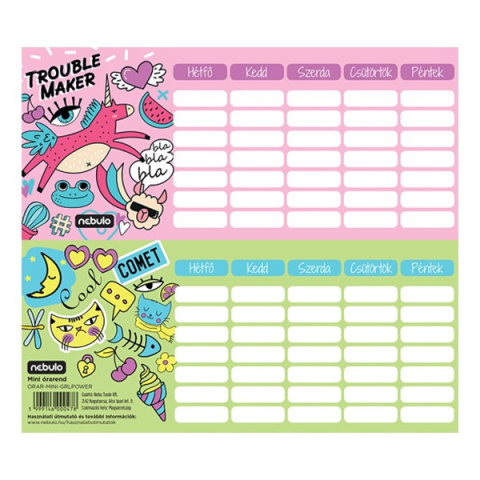 Órarend NEBULO mini Girl Power órarend árgrafikon