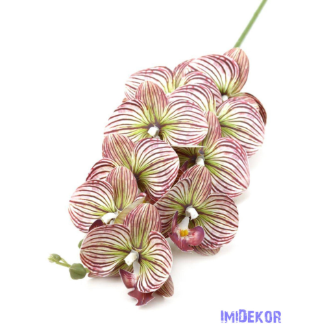 Orchidea 9 fejes ág 95cm - Csíkozott Mályva dekorációs kellék 1 kép