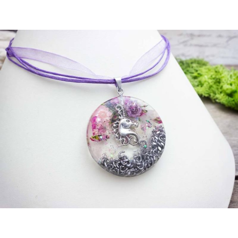 Orgonit egyszarvúval műgyanta préselt virágos nyaklánc nyaklánc 1 kép