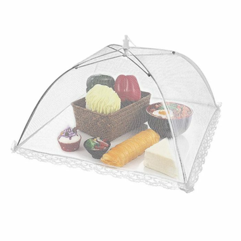 Az ernyő alakú élelmiszer fedő megvédi az élelmiszereket a rovaroktól.