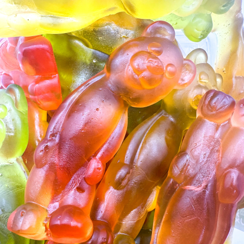 Fedezd fel a Óriás Gumimaci gumicukor varázslatos világát! 🧸🍬 Ezek az áttetsző, medve alakú édességek nemcsak gyümölcsös ízükkel hódítanak, hanem színes megjelenésükkel is feldobják a napodat. 🌈 Tökéletes választás bulikra, ajándékként vagy csak egy kis mókás nassolásra. 🎉 Gluténmentes összetételének köszönhetően széles körben fogyasztható. Próbáld ki, és éld át az édes medvekalandot! 😋. 🧸 Összetevők: Glükózszirup, cukor, víz,