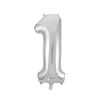 Ezüst színű, szám alakú óriás fólia lufi „1” számmal, melyet használhatsz születésnapra, névnapra, de akár egy céges partykra is használhatod dekorációként. Tulajdonságok: Anyaga: fólia A lufi mérete: - Magassága: 110 cm - Szélessége: 42 cm A lufi leveg