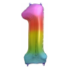 Szivárvány színű, szám alakú óriás fólia lufi „1” számmal, melyet használhatsz születésnapra, névnapra, de akár egy céges partyra is használhatod dekorációként. Tulajdonságok: Anyaga: fólia A lufi mérete: 42 cm × 110 cm A lufi levegővel és héliummal is