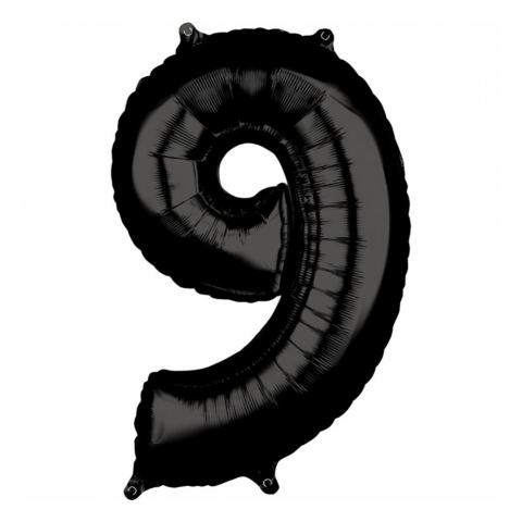 Fekete színű, szám alakú óriás fólia lufi „9” számmal, melyet használhatsz születésnapra, névnapra, de akár egy céges partyra is használhatod dekorációként. Tulajdonságok: Anyaga: fólia A lufi mérete: 86 cm × 57 cm (magasság × szélesség) A lufi levegőve