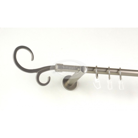 Az ORLANDO 120 cm-es nikkel-matt színű 1 rudas, modern tartós fém karnis szett tartalma: 1 db 120 cm-es nikkel-matt színű 16 mm átmérőjű fém karnisrúd 2 db Orlando típusú nikkel-matt színű végzáró 2 db falra szerelhető modern fém konzol 12 db fém karika