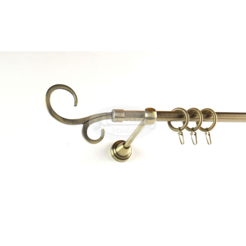 Az ORLANDO óarany színű 240 cm-es, 1 rudas fém karnis szett tartalma: 1 db 240 cm-es óarany színű, 16 mm átmérőjű fém karnisrúd 2 db Orlando típusú óarany színű fém karnis végzáró 3 db falra szerelhető fém konzol 24 db óarany színű műanyag függönykarika