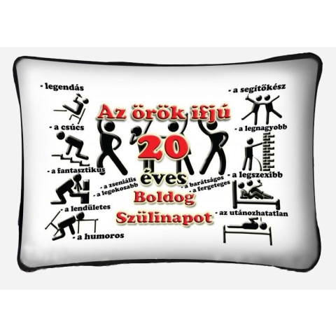 Remek ajándék ötelt szeretteinknek ez a szuper „örök ifjú” párna, melyet bátran ajándékozhatunk 20. születésnap alkalmával. Praktikus és igazán mókás lakásdekoráció!