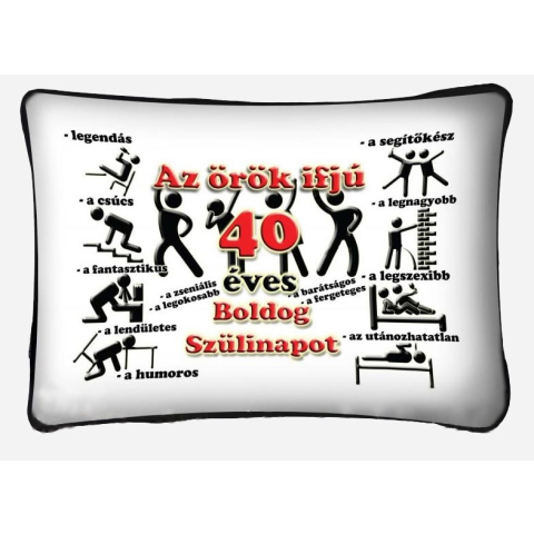 Örök ifjú párna 40. születésnapra ajándéktárgy árgrafikon
