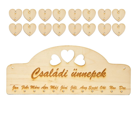 Az Öröknaptár egy egyedi, fából készült naptár, amely örök emlékként szolgálhat szeretteid számára. A naptárhoz tartozik 20 db függő, melyekre neveket, dátumokat vagy rövid üzeneteket gravírozhatunk. A gravírozás díja az árban benne foglaltatik. Fő jellem
