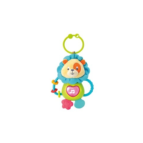 Lógasd fel az oroszlánt az ágyra és hallgasd, ahogy zenél! Az Oroszlán kiságyra tehető zenélő bébijáték egy puha plüssből készült oroszlánfigura, aki szórakoztatja a picit. Az oroszlán gombnyomásra zenélni kezd, miközben a pocakján lévő gomb villog. Az oroszlánt könnyen fel lehet akasztani akár babakocsira, autósülésre vagy az ágyra is, az oroszlán csörgő karikákkal is fel van szerelve. Az oroszlán kiságyra tehető zenélő bébijáték fejleszti a kézügy