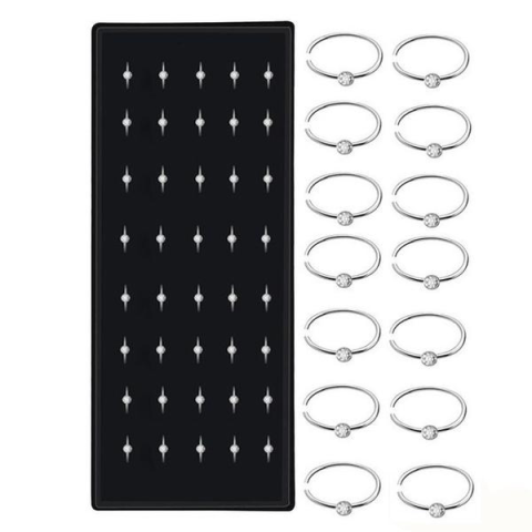 40 darabos fehér orr piercing szett 316L orvosi acélból, antiallergén, tartós és elegáns. Stílusos, biztonságos testékszerek minden alkalomra