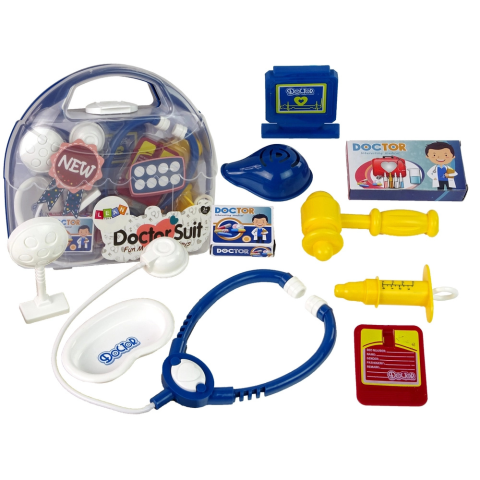 A rózsaszín bőröndbe csomagolt orvoskészlet egy oktató jellegű játék, amely fény- és hangeffektusokkal ellátott sztetoszkópot, hőmérőt, fecskendőt, ollót, betegkártyát és egyéb orvosi kellékeket tartalmaz. A praktikus bőrönd megkönnyíti a tárolást és a s