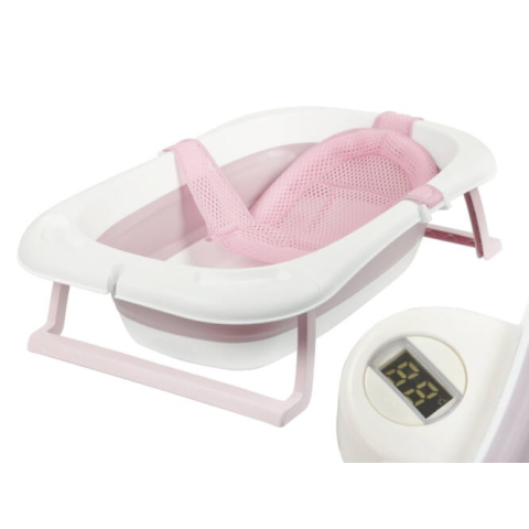 Összecsukható babakád hálóval – rózsaszín Ez az összecsukható babakád hálóval a kisbabák kényelmes és biztonságos fürdetéséhez készült. Kompakt, könnyen hordozható kialakításának köszönhetően ideális otthoni és utazási használatra is. A puha, hálós betét