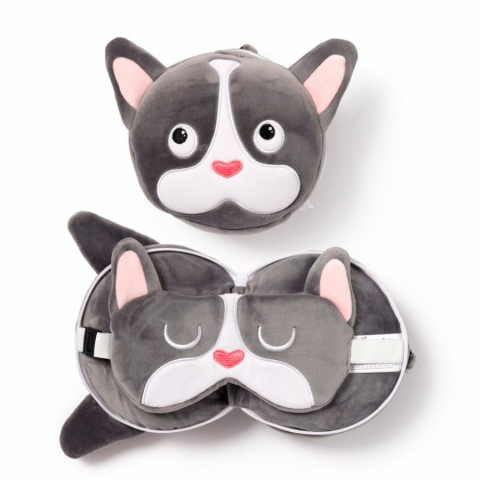 Egy igazi francia bulldog rajongónak tökéletes ajándék ez a plüss utazópárna szemmaszkkal. Puha, kényelmes, prémium anyagból készült.