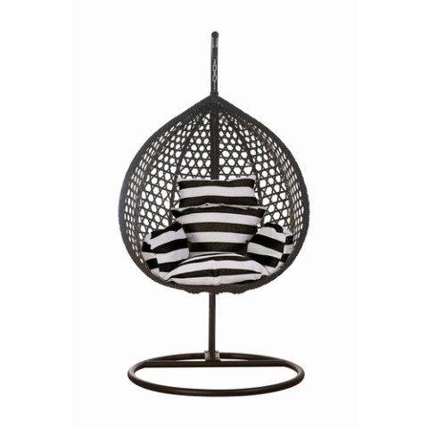 Teljes Összecsukható függőszék, függőfotel fekete rattan, fehér-fekete csíkos párnával termékleírás