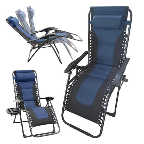 Összecsukható Gravitációs Napozóágy – Párnázott, Sötétkék-Fekete 27261_N kerti bútor termékleírás