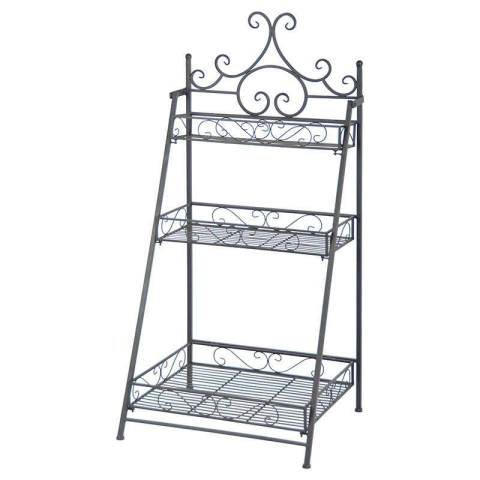 Összecsukható kovácsoltvas virágtartó állvány, lépcsőzetes alakú, 3 polcos, 114 cm bútor termékleírás