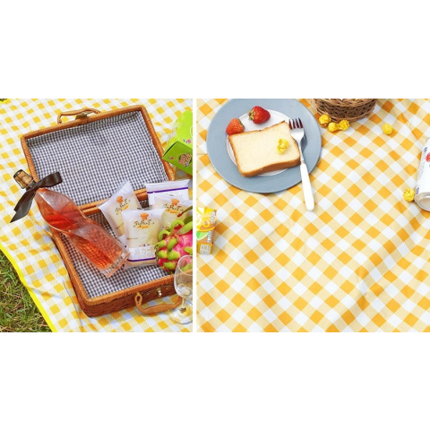 Összehajtható piknik takaró, strandszőnyeg Sárga kockás lakástextília termékleírás