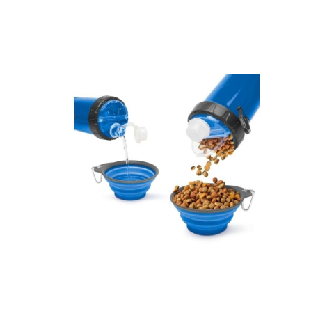Összenyomható kutyatál kulaccsal - kék kutyatál 1 kép