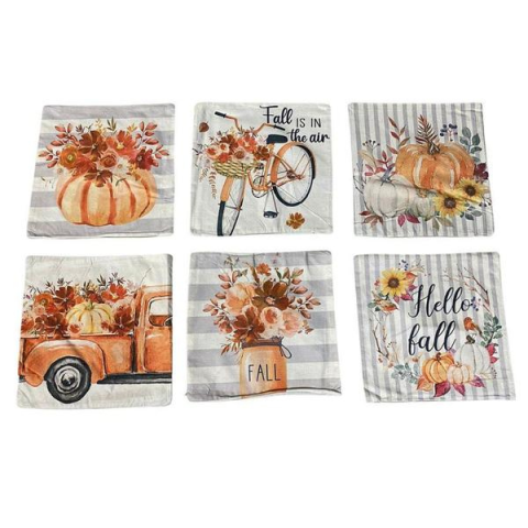 Őszi párnahuzat – 45×45 cm 55048Hangulatos, őszi mintás párnahuzat, amely tökéletes kiegészítője lehet nappalidnak, hálószobádnak vagy teraszodnak. A zsákvászon hatású anyag és a szezonális motívumok igazán barátságos, otthonos atmoszférát teremtenek.Jellemzők:Méret: 45 × 45 cmAnyag: zsákvászon hatású textil (poliészter)Minták: őszi motívumok – sütőtök, virágcsokor, vintage autó, feliratok („Hello Fall”, „Fall is in the air”)Felhasználás: n