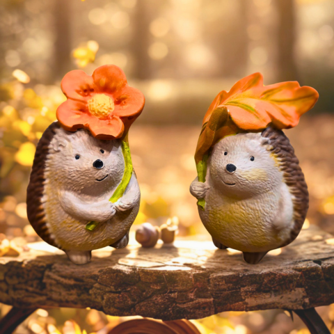 Aranyos, kézzel festett süni figura, amely két változatban érhető el: levélel vagy virággal. Tökéletes kiegészítője az őszi dekorációnak, polcra, komódra vagy asztaldísz mellé is bájos választás